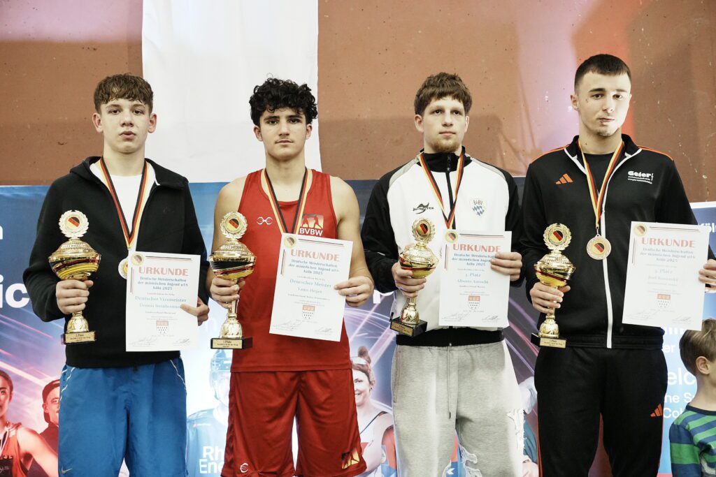Bei den Deutschen Meisterschaften der männlichen Jugend U18 in Köln vom 04.–08.11. hat unser Joel ein starkes Turnier geboxt und sich bis ins Halbfinale durchgekämpft – und somit die Bronze-Medaille geholt.